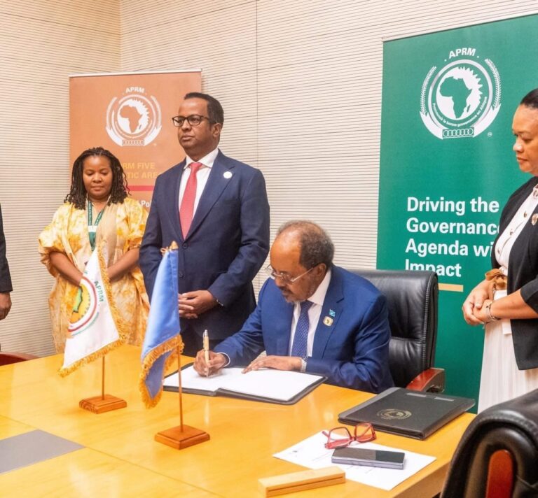 ويُعدّ انضمام الصومال إلى الآلية الأفريقية لمراجعة النظراء دليلاً على التزام الحكومة الفيدرالية بتعزيز الديمقراطية والحكم الرشيد، وبناء مؤسسات عامة فعّالة وخاضعة للمساءلة، والإدارة الاقتصادية المسؤولة، والتنمية الاجتماعية الشاملة.