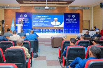 مقديشو 12 جمادى الثانية 1441 – الموافق 06 فبراير 2020 (صونا) ـ استقبل قائد الشرطة الوطنية اللواء عبدي حسن محمد ” حجار” اليوم الخميس المبعوث الخاص للأمم المتحدة لدى الجمهورية سعادة جيمس سوان، وذلك بمقره بالعاصمة مقديشو.