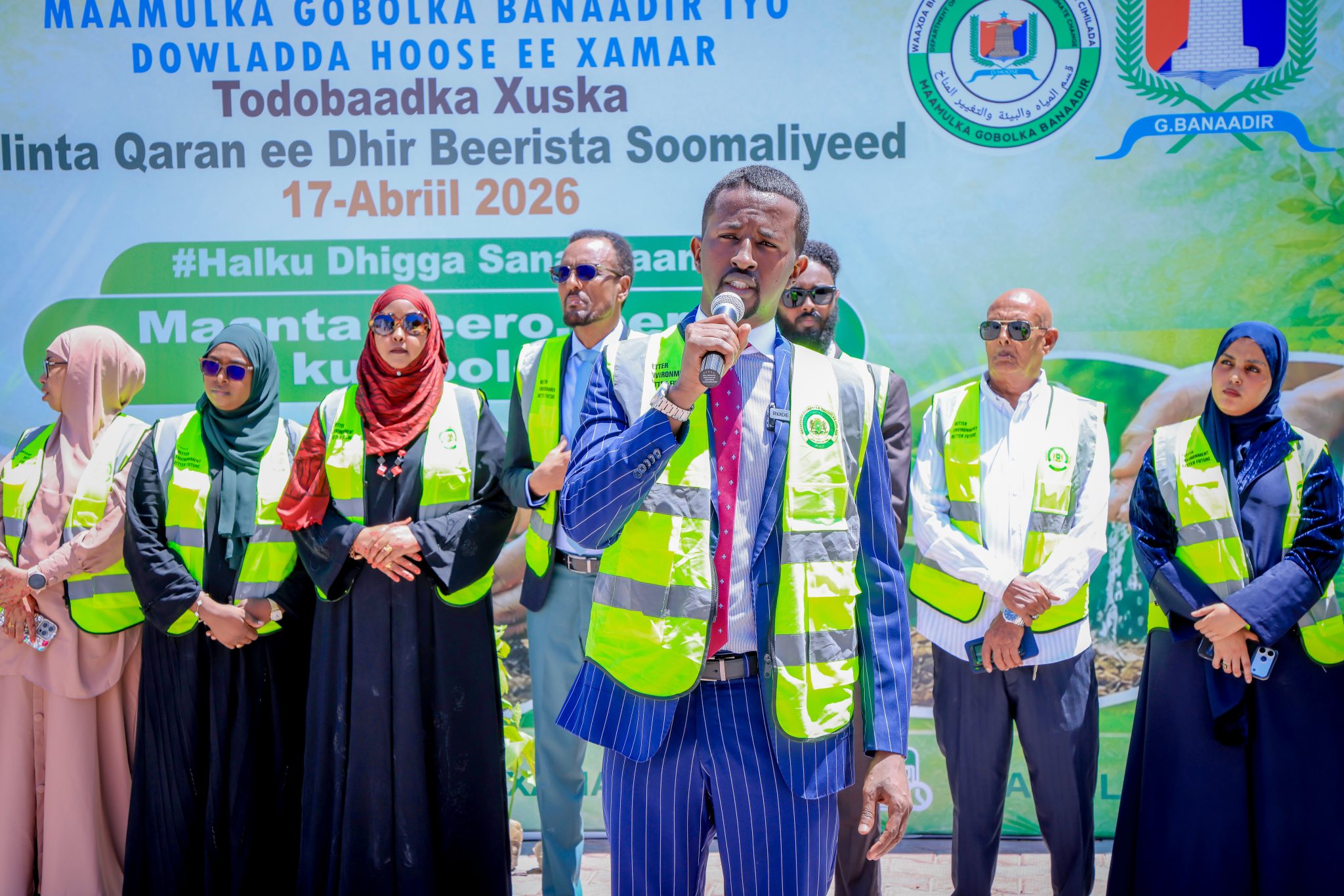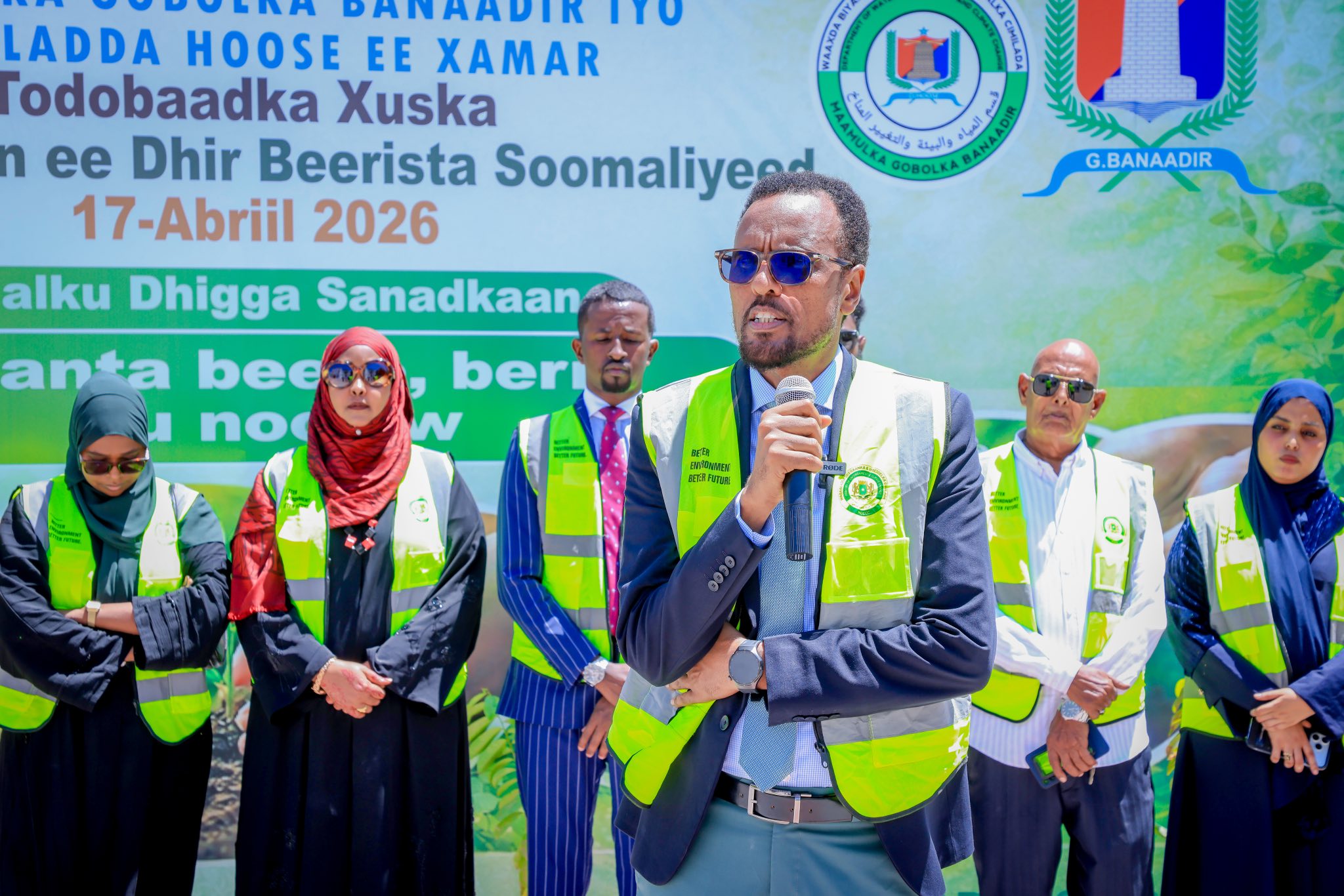 مقديشو 02 ذو القعدة 1447 الموافق 19 أبريل 2026 م (صونا) – اختتمت إدارة محافظة بنادر بالتعاون مع وزارة البيئة وتغير المناخ، فعاليات الأسبوع الوطني لزراعة الأشجار، بزراعة عدد من الأشجار في مقر بلدية مقديشو ، وذلك في إطار الجهود الحكومية لتعزيز إعادة تأهيل البيئة وتنفيذ مبادرة “الصومال الأخضر”.