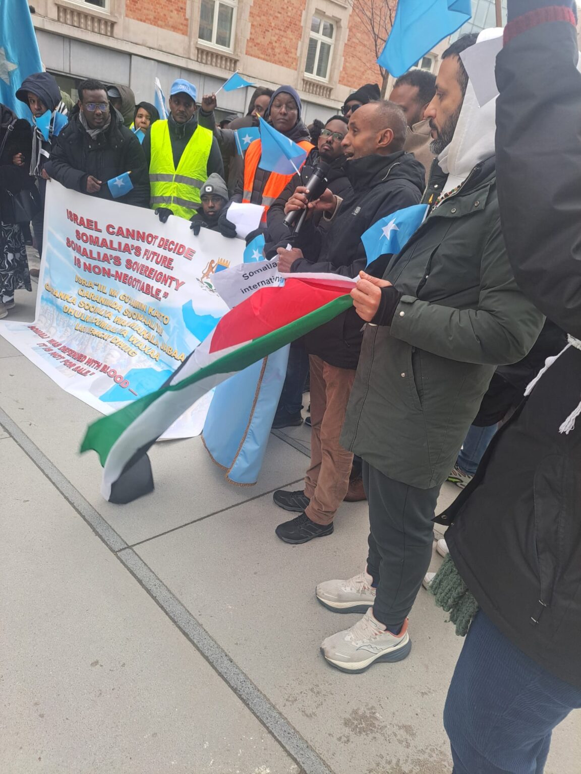 وتجمّع المتظاهرون أمام مقر الاتحاد الأوروبي في بروكسل، مرددين هتافاتٍ تندّد بالعدوان الإسرائيلي وتقسيم الصومال.