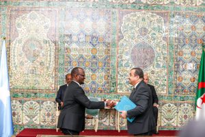 الجزائر/ وكالة صونا – شهد رئيس جمهورية الصومال الفيدرالية، السيد حسن شيخ محمود، ونظيره الجزائري، السيد عبد المجيد تبون، مراسم توقيع عدد من اتفاقيات التعاون المشتركة بين البلدين، في مجالات متعددة تشمل الخارجية، والتعليم، والثروة الحيوانية بالإضافة إلى الغاز الطبيعي.