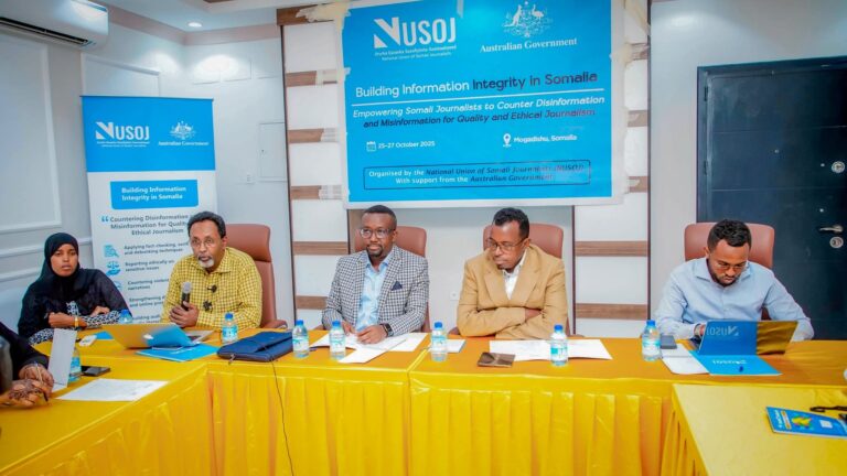 ويهدف التدريب الذي ينظمه الاتحاد الوطني للصحفيين بالتعاون مع الحكومة الأسترالية، إلى تطوير قدرة الصحفيين الصوماليين على مكافحة الأخبار الكاذبة والمعلومات المضللة المستخدمة في وسائل الإعلام.