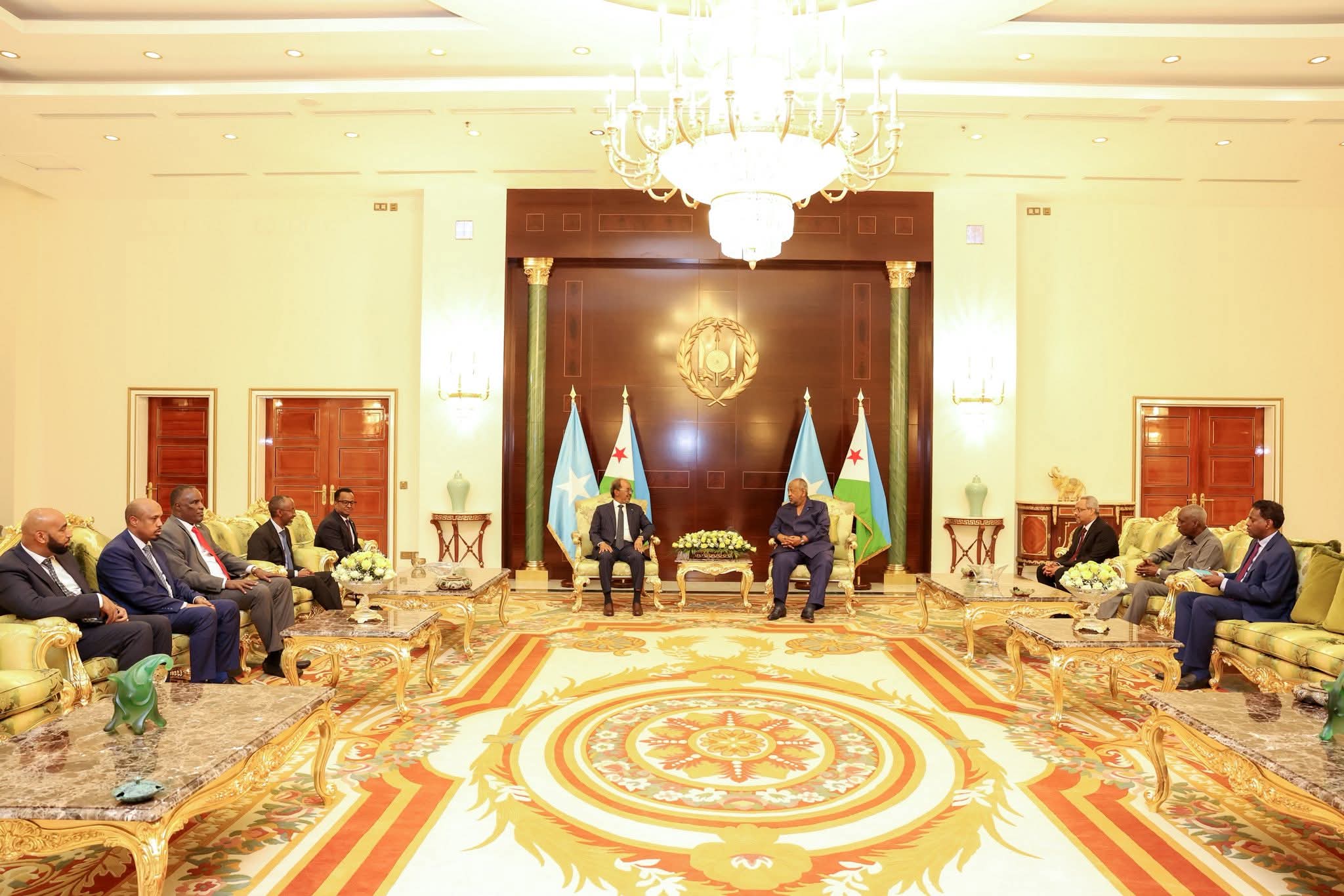 رئيس الجمهورية ونظيره الجيبوتي يناقشان الجهود الدبلوماسية للدفاع عن وحدة الصومال واستقلالها