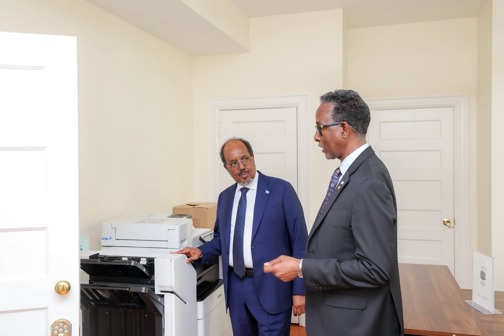 وخلال الزيارة، تفقد فخامته أقسام تقديم الخدمات في السفارة ومكاتب المسؤولين، واستمع إلى تقرير عن الخدمات المقدمة للمواطنين الصوماليين، وأشاد بالدبلوماسيين وموظفي السفارة على جهودهم المتميزة في خدمة بلدهم.
