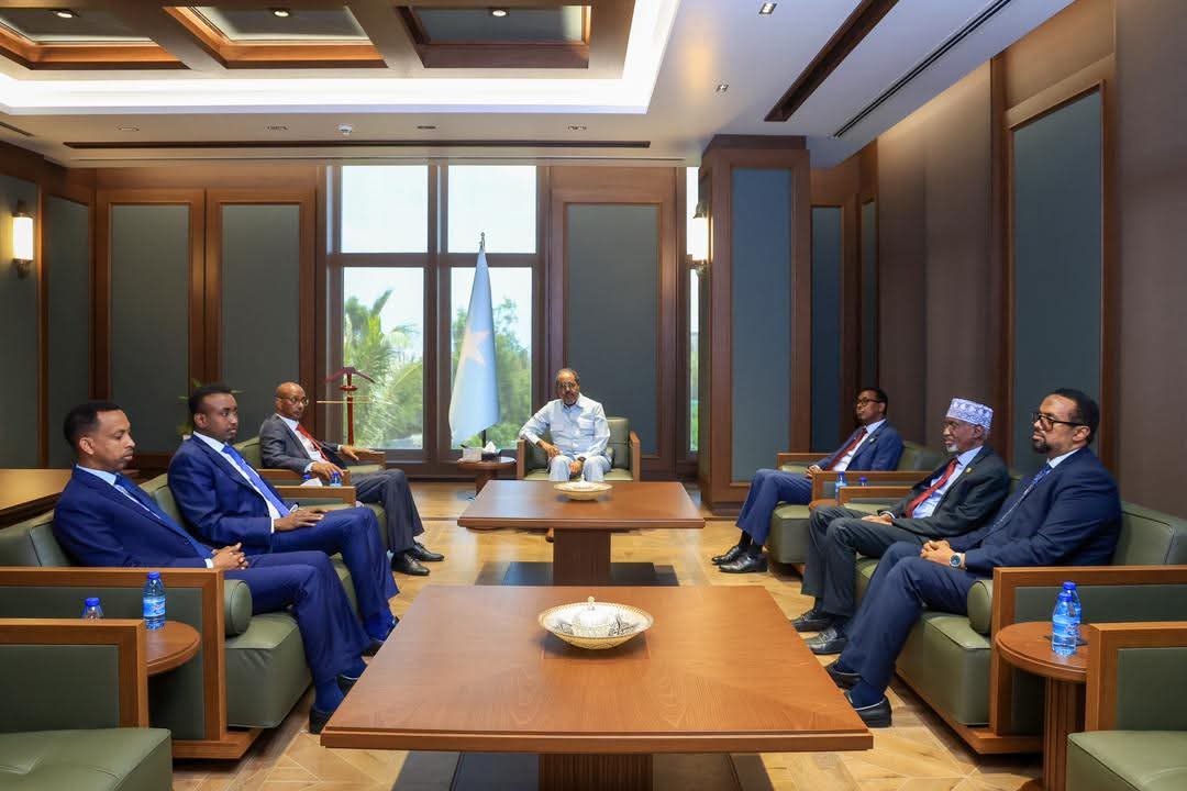 واستمع فخامته إلى تقرير من الرئيس حول الوضع العام في مناطق شمال شرق الصومال، حاثًا القادة المنتخبين للإدارة على التركيز على الحفاظ على السلام والوئام الاجتماعي والاستقرار ووحدة الشعب الصومالي.