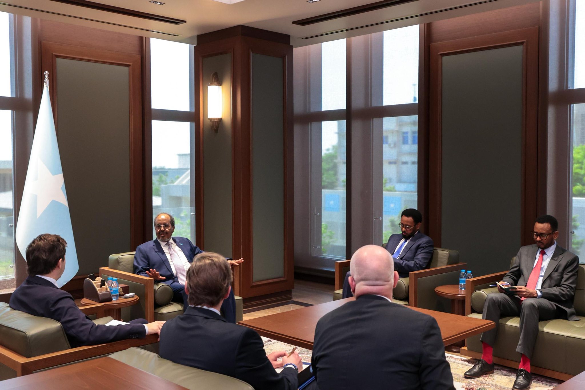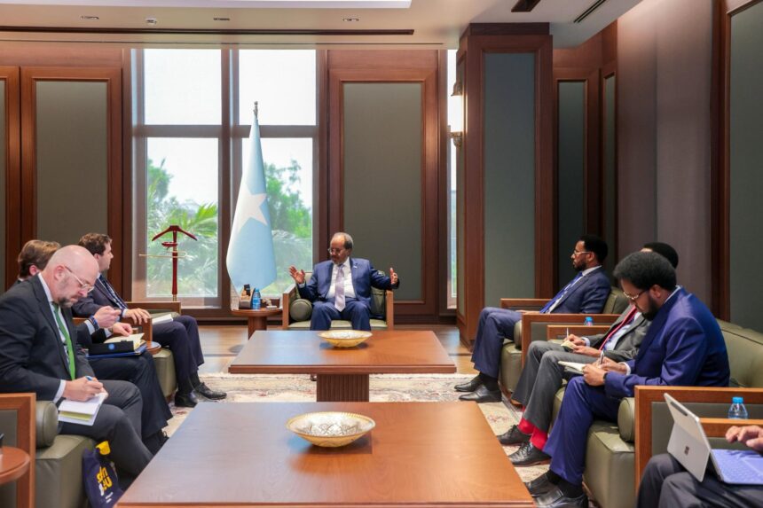 مقديشو 25 جمادى الآخرة 1447هـ الموافق 16 ديسمبر 2025م (صونا) – استقبل رئيس الجمهورية فخامة حسن شيخ محمود،اليوم الثلاثاء،بمكتبه في القصر الرئاسي ،وزير التعاون الإنمائي الدولي والتجارة الخارجية في حكومة مملكة السويد، السيد بنيامين دوسا.
