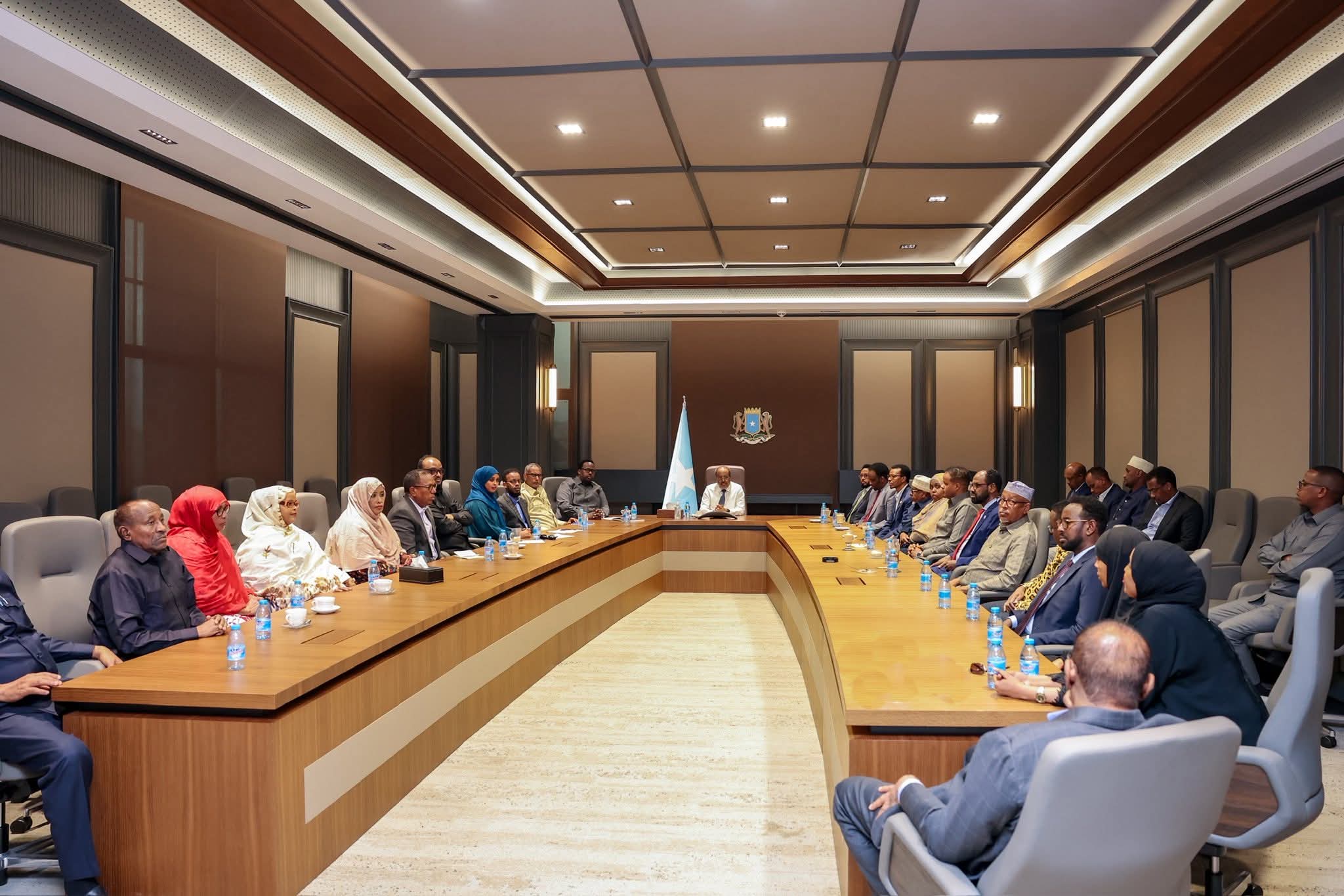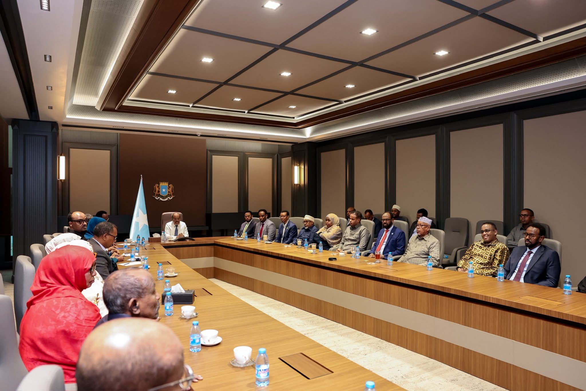 مقديشو 8 رجب 1447 هـ الموافق 28 ديسمبر 2025 م (صونا) – عقد فخامة رئيس الجمهورية، الدكتور حسن شيخ محمود، الذي يُجري حاليًا مشاورات وطنية لحماية وحدة البلاد واستقلالها، اجتماعًا مع مسؤولي السلطتين التنفيذية والتشريعية الممثلين للمناطق الشمالية من البلاد.