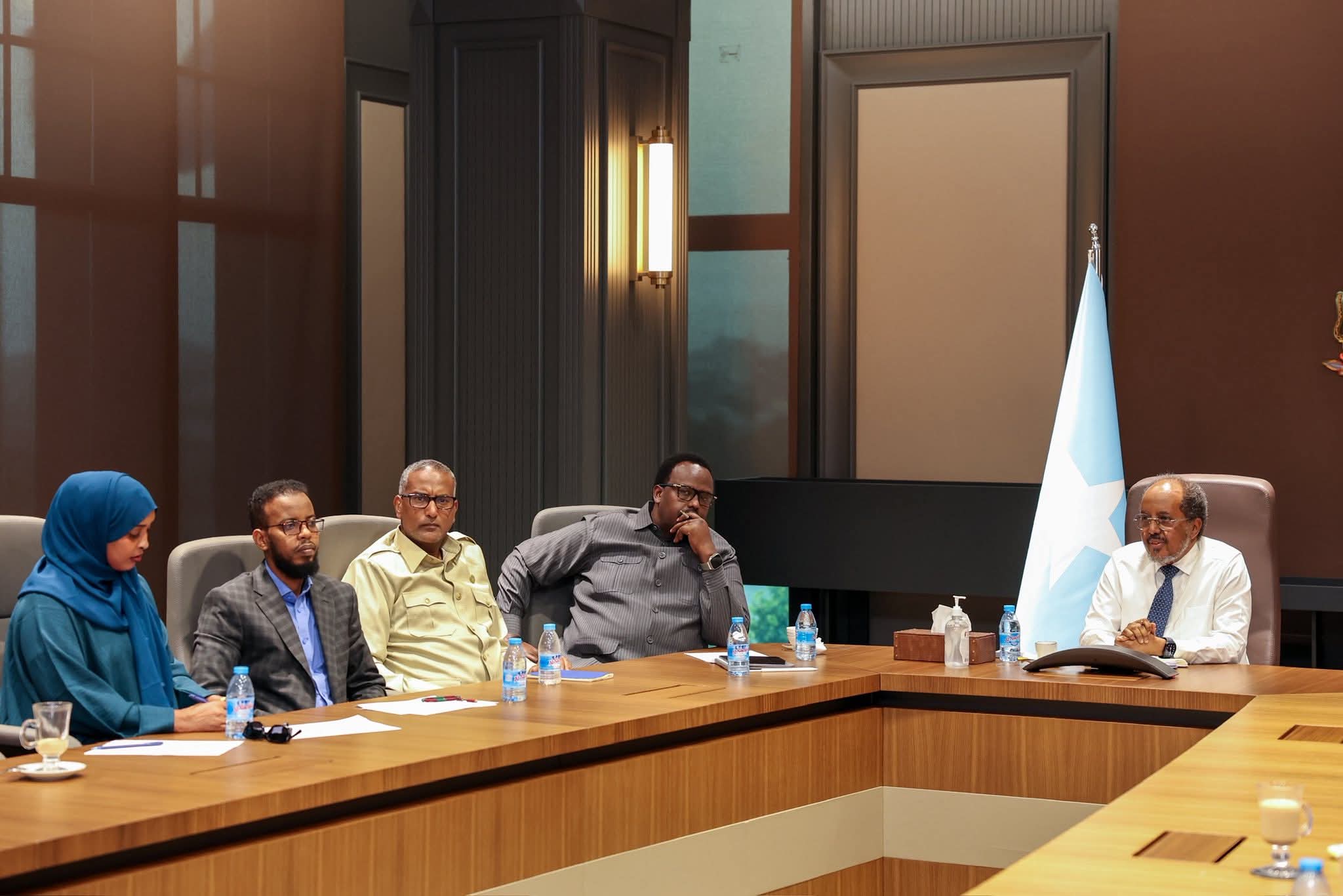واستمع فخامته إلى مقترحات المسؤولين وآرائهم العملية بشأن سبل منع التدخل الأجنبي وحماية وحدة البلاد، وحثّهم على القيام بدورهم في حماية سيادة ووحدة الشعب الصومالي.
