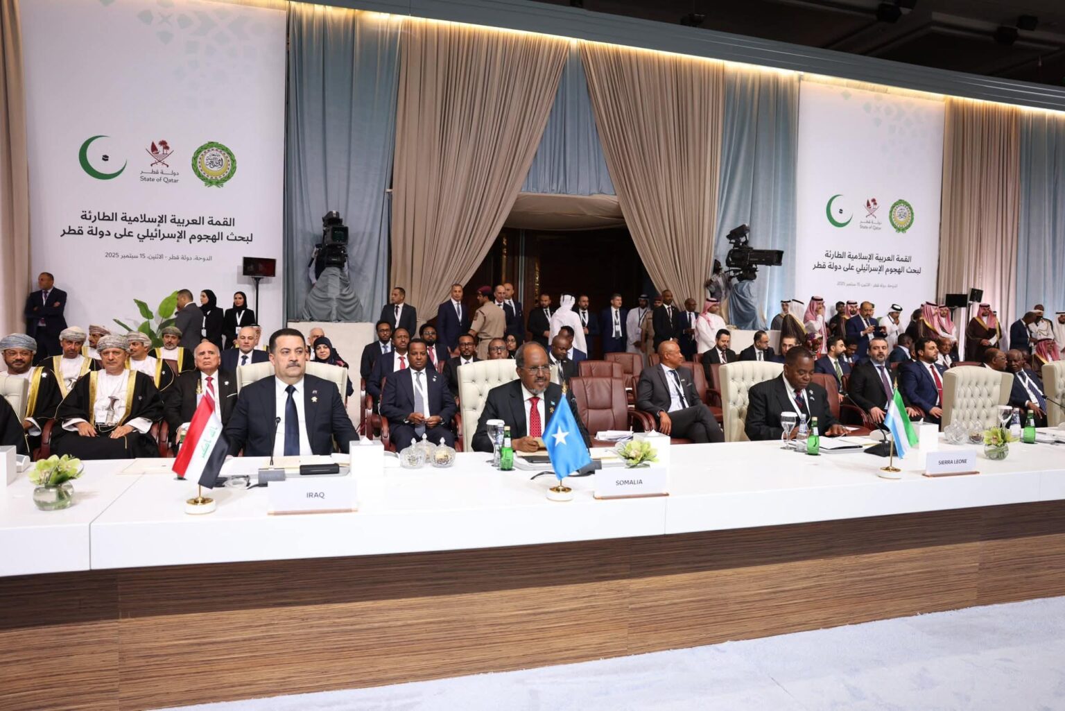 الدوحة  23 ربيع الأول 1447 هـ الموافق 15  سبتمبر 2025 م (صونا) – ألقى رئيس الجمهورية، فخامة الدكتور حسن شيخ محمود، اليوم، كلمةً في القمة الطارئة للدول العربية والإسلامية المنعقدة في الدوحة، تناولت الهجوم الإسرائيلي على دولة قطر الشقيقة.