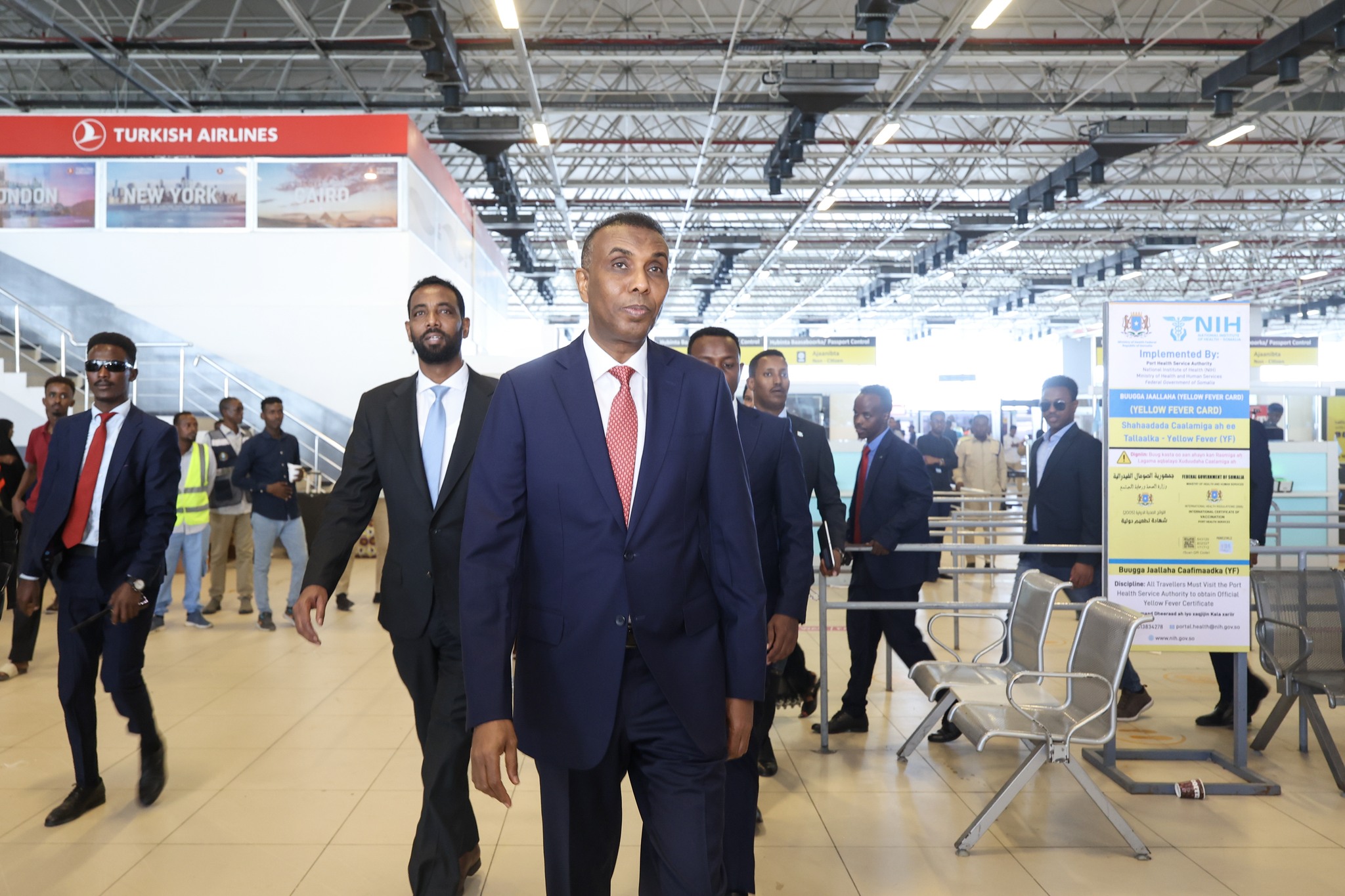 مقديشو 22 شعبان 1447 هـ الموافق10 فبراير 2026 م (صونا)- قام دولة رئيس الوزراء السيد حمزة عبدي بري،اليوم الثلاثاء،بجولة تفقدية إلى مطار آدم عبدالله الدولي بالعاصمة مقديشو للإطلاع على سير تقديم الخدمات فيه.