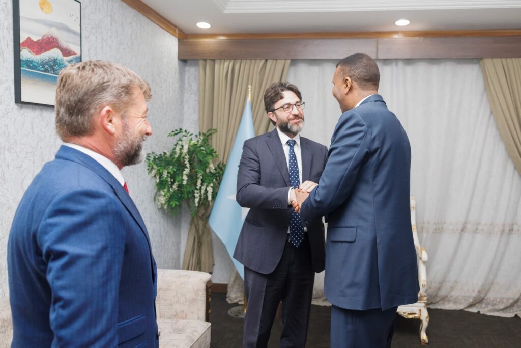 مقديشو 03 جمادى الأولى 1447 هـ الموافق 25 أكتوبر 2025 م (صونا)- استقبل دولة رئيس الوزراء السيد حمزة عبدي بري،اليوم السبت ،بمكتبه السفير التركي لدى البلاد سعادة السيد ألبر أكتاش ،إلى جانب مسؤولين في شركة “فافوري” التركية التي تدير مطار آدم عبدالله الدولي.