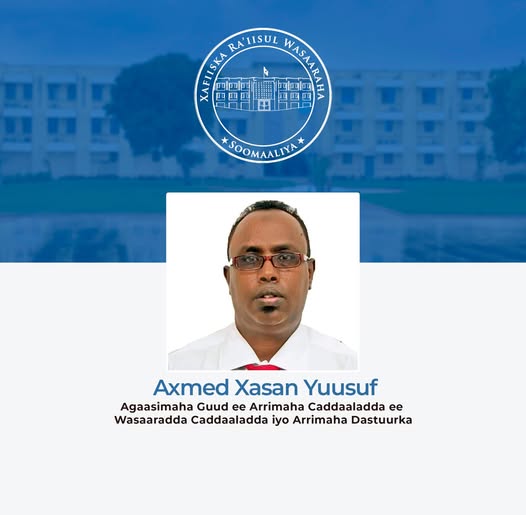 مقديشو 05 جمادى الآخرة 1447 هـ الموافق 26 نوفمبر 2025 م (صونا) – عين دولة رئيس الوزراء السيد حمزة عبدي بري ،صباح اليوم الأربعاء،السيد أحمد حسن يوسف، مديرًا عامًا جديدا لوزارة العدل والشؤون الدستورية.