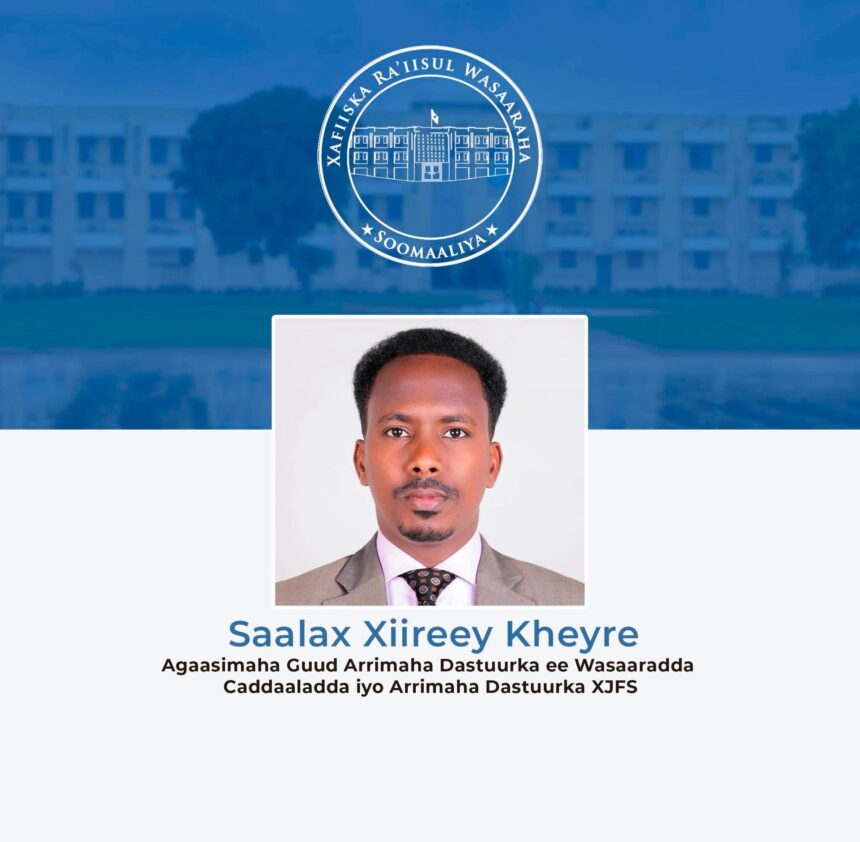 مقديشو 06 شعبان 1447 هـ الموافق 25 يناير 2026 م (صونا)- عين دولة رئيس الوزراء السيد حمزة عبدي بري ،صباح اليوم الأحد،السيد صالح حيري خيري، مديرعام شؤون الدستور في وزارة العدل والشؤون الدستورية.