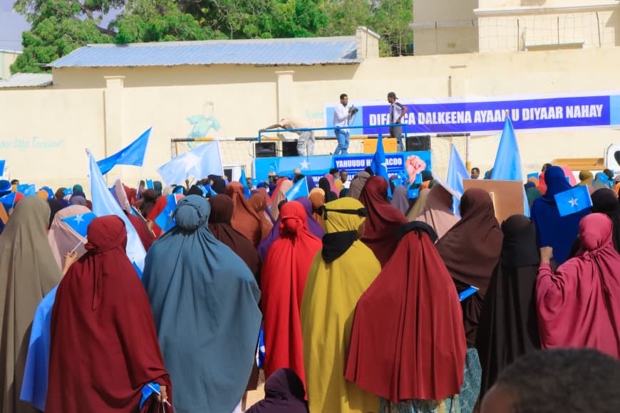 وشهدت مديرية كاران، اليوم، مظاهرة جماهيرية حاشدة شارك فيها مئات المواطنين، عبّروا من خلالها عن رفضهم القاطع لأي تدخل أجنبي يستهدف استقلال البلاد ووحدة أراضيها، مؤكدين أن الصومال دولة موحدة غير قابلة للتجزئة.