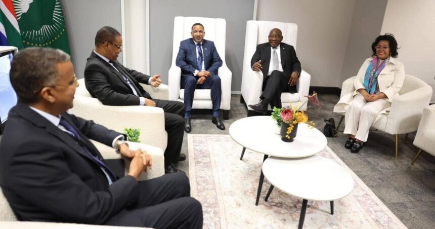 وخلال فعاليات القمة، عقد نائب رئيس الوزراء  لقاءً خاصًا مع رئيس جنوب أفريقيا، السيد سيريل رامافوزا، بحضور سفير البلاد لدى جنوب أفريقيا، السيد محمد شيخ إسحاق.