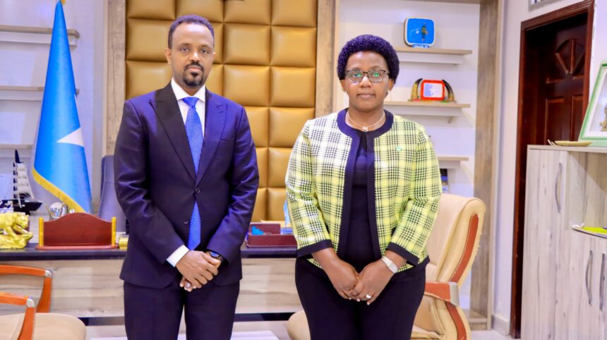 مقديشو 21 جمادى الأولى 1447 هـ الموافق 12 نوفمبر 2025 م (صونا)- استقبل معالي عبد الرحمن يوسف العدالة نائب وزير الإعلام والثقافة والسياحة اليوم في مكتبه بالعاصمة مقديشو، الدكتورة كارولين أسيموي، السكرتيرة التنفيذية للجنة اللغة السواحيلية التابعة لمنظمة التعاون الاقتصادي لشرق أفريقيا، وذلك لبحث سبل التعاون في نشر وتطوير اللغة السواحيلية في الصومال.