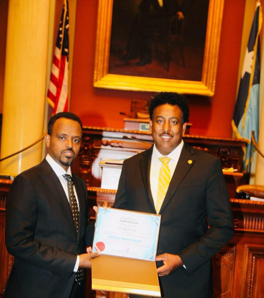 وقد قام الوزير العدالة بمنح النائب سماكتب ، شهادة شرف تقديرًا لدوره البارز في تعزيز العلاقات بين الجالية الصومالية في مينيسوتا والوطن الأم، مثمنًا جهوده في دعم الروابط الثقافية والاجتماعية بين الطرفين.