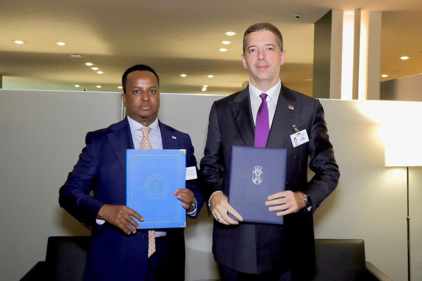 نيوريوك 01 ربيع الثاني 1447 هـ الموافق 23 سبتمبر 2025 م(صونا) – وقع وزير الخارجية والتعاون الدولي، السيد عبد السلام عبدي علي، ونظيره الصربي، السيد ماركو دوريتش، في نيويورك، مذكرة تفاهم بين معهد الدراسات الدبلوماسية التابع لوزارة الخارجية الصومالية والأكاديمية الدبلوماسية التابعة لوزارة خارجية صربيا، وذلك على هامش اجتماعات الدورة الثمانين للجمعية العامة للأمم المتحدة.