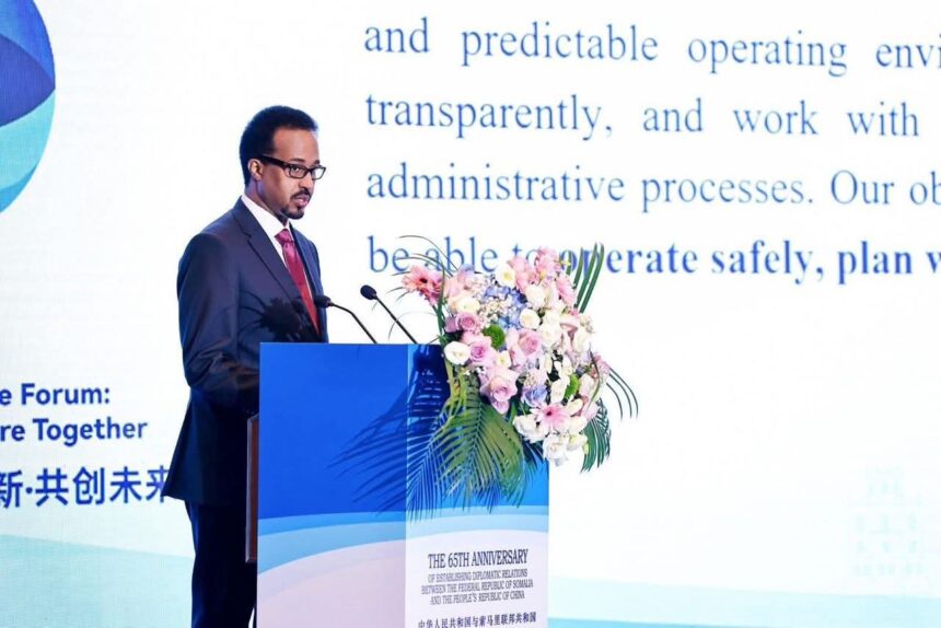 وعلى هامش زيارته إلى بكين، شارك معالي الوزير في منتدى أعمال اقتصادي ضم أكثر من 300 شركة من الصين وعدد من الدول الأخرى، ألقى خلاله كلمة استعرض فيها الفرص الاستثمارية المتاحة في الصومال، مسلطًا الضوء على جهود الحكومة الفيدرالية الرامية إلى تعزيز بيئة الاستثمار وجذب رؤوس الأموال الأجنبية.