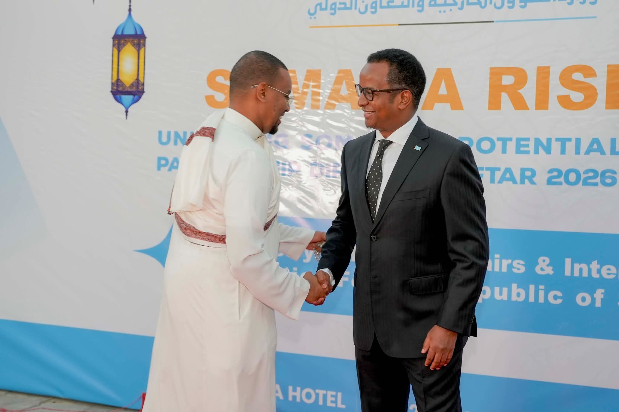 مقديشو 10 رمضان 1447 هـ الموافق 27 فبراير 2026 م (صونا):- تحت  شعار “نهضة الصومال”، استضاف معالي وزير الخارجية والتعاون الدولي، السيد عبد السلام علي، إفطارًا دبلوماسيًا رفيع المستوى لأعضاء السلك الدبلوماسي المعتمدين لدى جمهورية الصومال الفيدرالية.