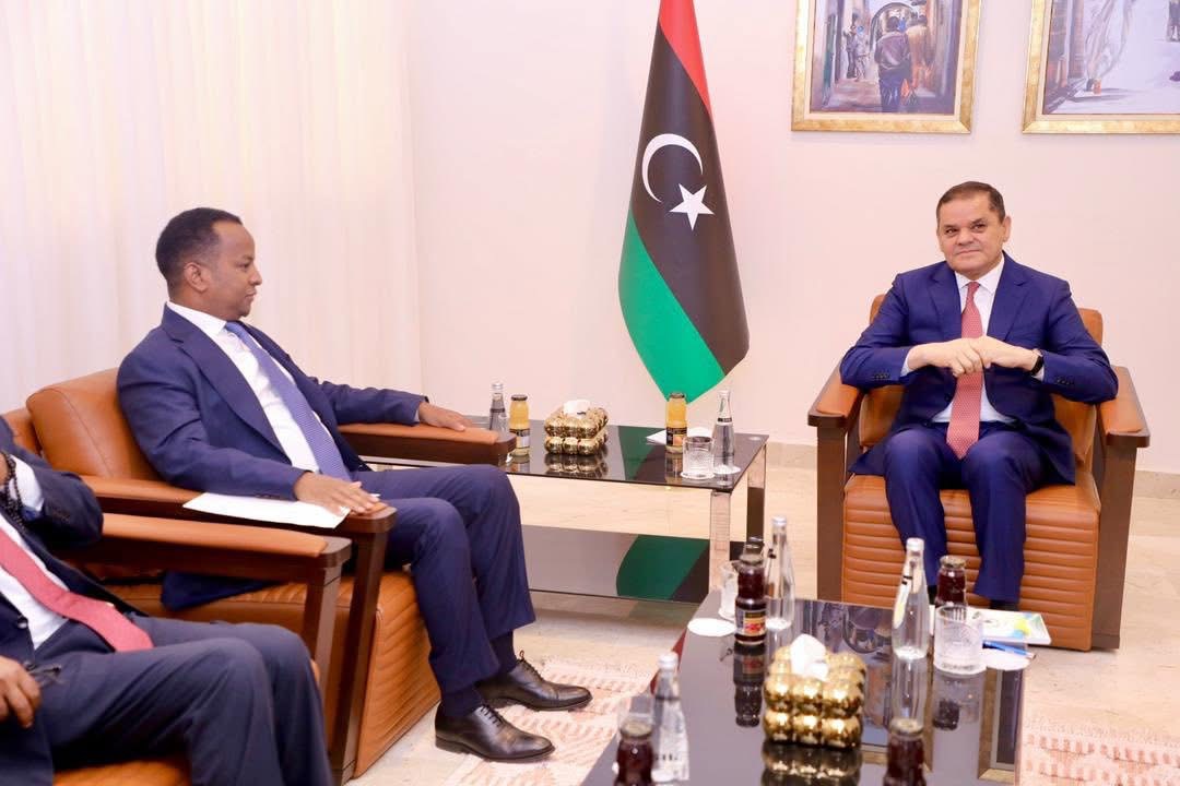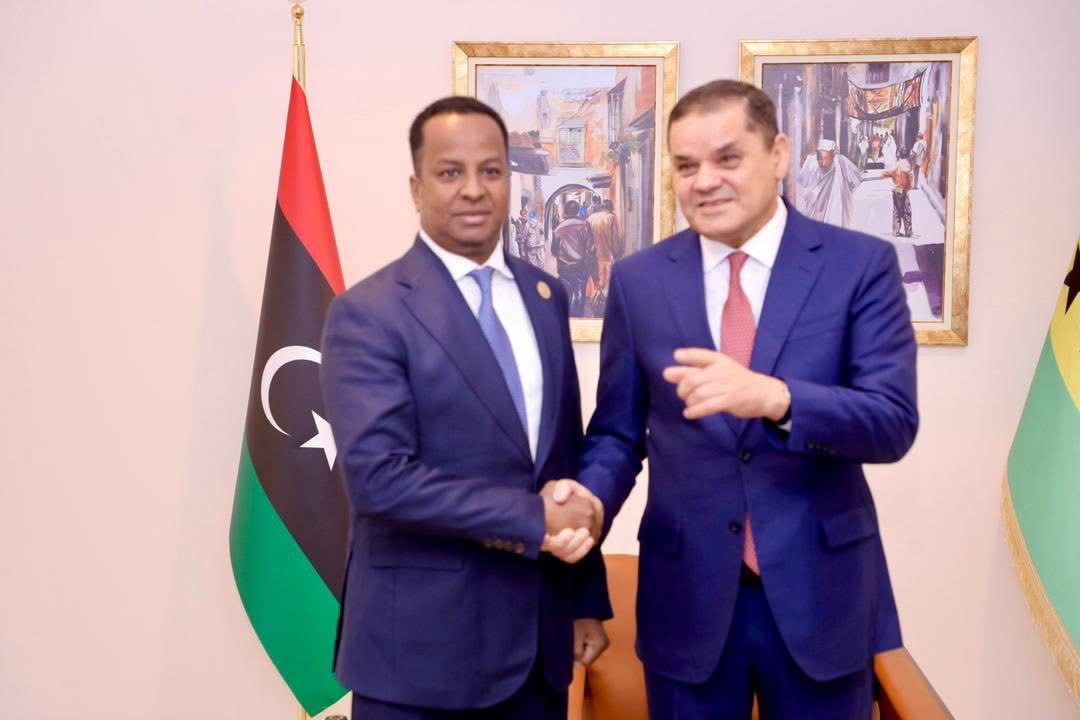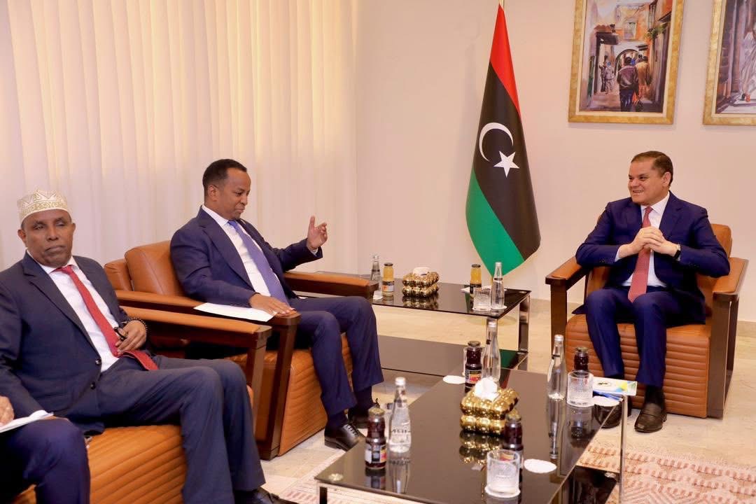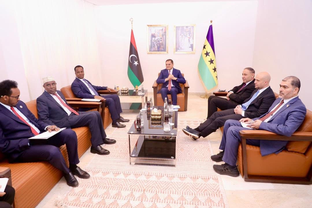 طرابلس 23 شوال 1447هـ الموافق 11 أبريل 2026م (صونا)- التقى معالي وزير الخارجية والتعاون الدولي بجمهورية الصومال الفيدرالية، السيد عبدالسلام عبدي علي، اليوم في طرابلس، دولة رئيس مجلس الوزراء الليبي، السيد عبد الحميد الدبيبة.