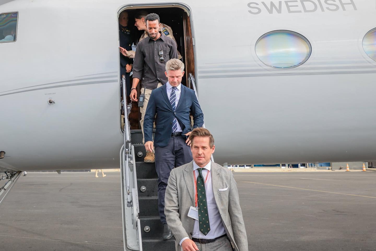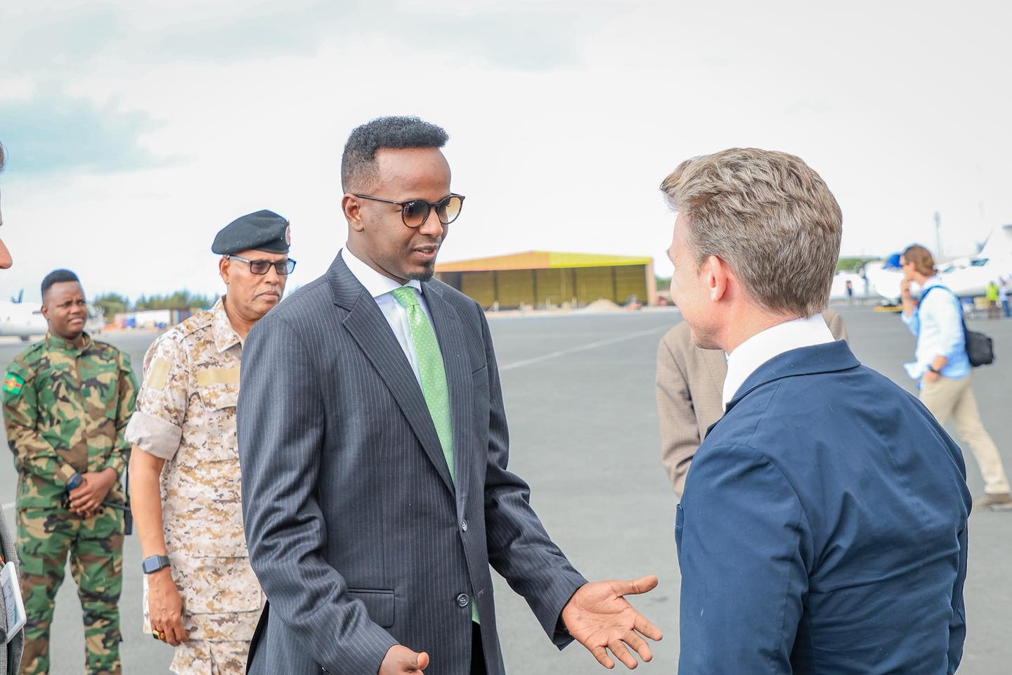 وكان في استقبال الوزير السويدي لدى وصوله إلى مطار آدم عدي الدولي، وزير الدولة بوزارة الدفاع، معالي السيد عمر علي عبدي، وعدد من كبار المسؤولين في الوزارة.