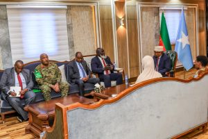 مقديشو / وكالة صونا- استقبل وزير الدفاع، السيد أحمد معلم فقي، برفقة قائد الجيش الوطني ، اللواء أدوا يوسف راغي، اليوم في مكتبه الممثل الخاص لرئيس مفوضية الاتحاد الإفريقي ورئيس بعثة الاتحاد الإفريقي لدعم الصومال (AUSSOM)، السفير الحاج إبراهيم دين، ونائبه السيد مختار عثمان كاري، وقائد قوات البعثة، الفريق سام كافوما.