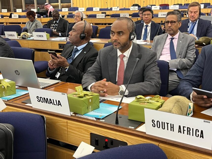ويمثل الوزير الصومال إلى جانب المدير العام لميناء مقديشو، السيد السفير محمد علي نور أمريكو، والوفد المرافق لهما، في جلسات النقاش والفعاليات المصاحبة لتعزيز التعاون البحري الدولي وتطوير السياسات البحرية.