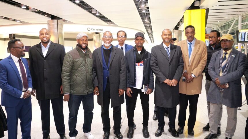 وكان في استقبال الوفد لدى وصوله في مطار هيثرو الدولي ، السفير الصومالي لدى المملكة المتحدة، السيد عبد القادر عبدي حاشي، وأفراد من الجالية الصومالية في بريطانيا.