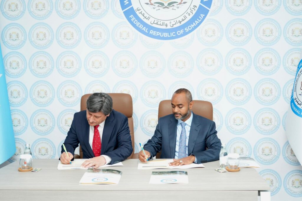 مقديشو 10 شوال 1447هـ الموافق 29 مارس 2026م (صونا) – وقّع وزير الموانئ والنقل البحري في الحكومة الفيدرالية، السيد عبدالقادر محمد نور، اليوم، مذكرة تفاهم مع المدير العام لشركة تسجيل السفن الصومالية المحدودة، السيد تشاغداش أويكون سالتاش، وذلك لإنشاء سجل وطني للسفن الصومالية، بهدف تمكين السفن من رفع العلم الصومالي، في خطوة كبيرة تعكس التزام الحكومة بتطوير وتحديث قطاعها البحري.