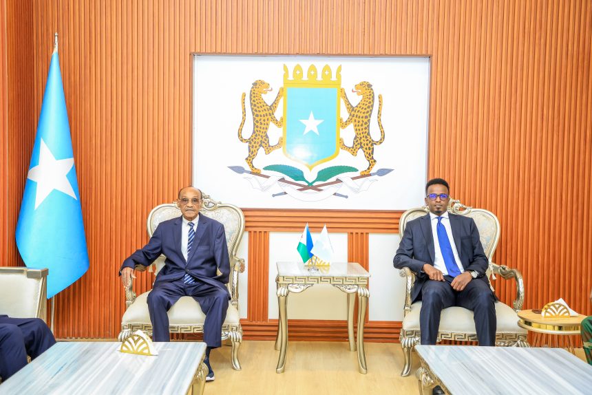 وكان في استقبال الوزير الجيبوتي بمطار آدم عدي الدولي وزير الدولة بوزارة الدفاع في الحكومة الفيدرالية الصومالية، السيد عمر علي عبدي، وعدد من المسؤولين في الوزارة.