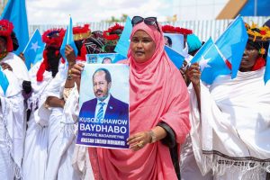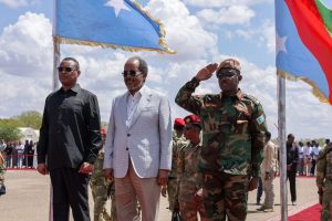 BAIDOA (SONNA) — The President of the Federal Republic of Somalia, H.E. Hassan Sheikh Mohamud, alongside a high-level executive delegation, arrived today in Baidoa, the interim capital of the South West State. The President received a massive, coordinated welcome from the Interim Leader of the South West State, the Speaker of the House of the People of the Federal Parliament, various federal and state-level officials, and hundreds of local citizens.