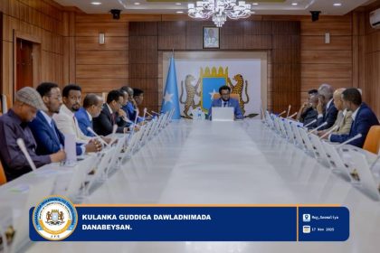 Mogadishu (SONNA): The President of South West State, Abdiasis Hassan Mohamed (Laftagareen), held a meeting at the Baidoa Presidential Palace…