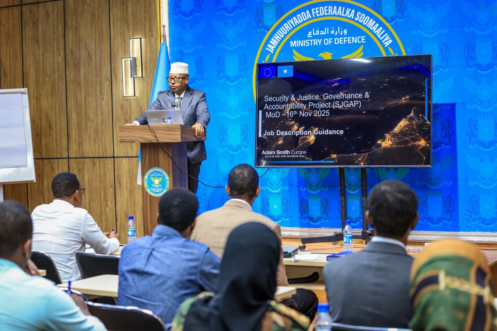 Mogadishu, (SONNA) — The Minister of Defence of the Federal Government of Somalia, H.E. Ahmed Moallim Fiqi, today officiated the opening of a specialized training on the Procedure for Developing Job Descriptions, delivered by experts from the Security and Justice Governance and Accountability Project (SJGAP).