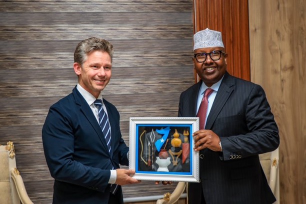 Mogadishu, (SONNA) — The Minister of Defence of the Federal Government of Somalia, H.E. Ahmed Moallim Fiqi, today received his counterpart from the Kingdom of Sweden, H.E. Pål Jonson, who is on an official visit to Somalia.