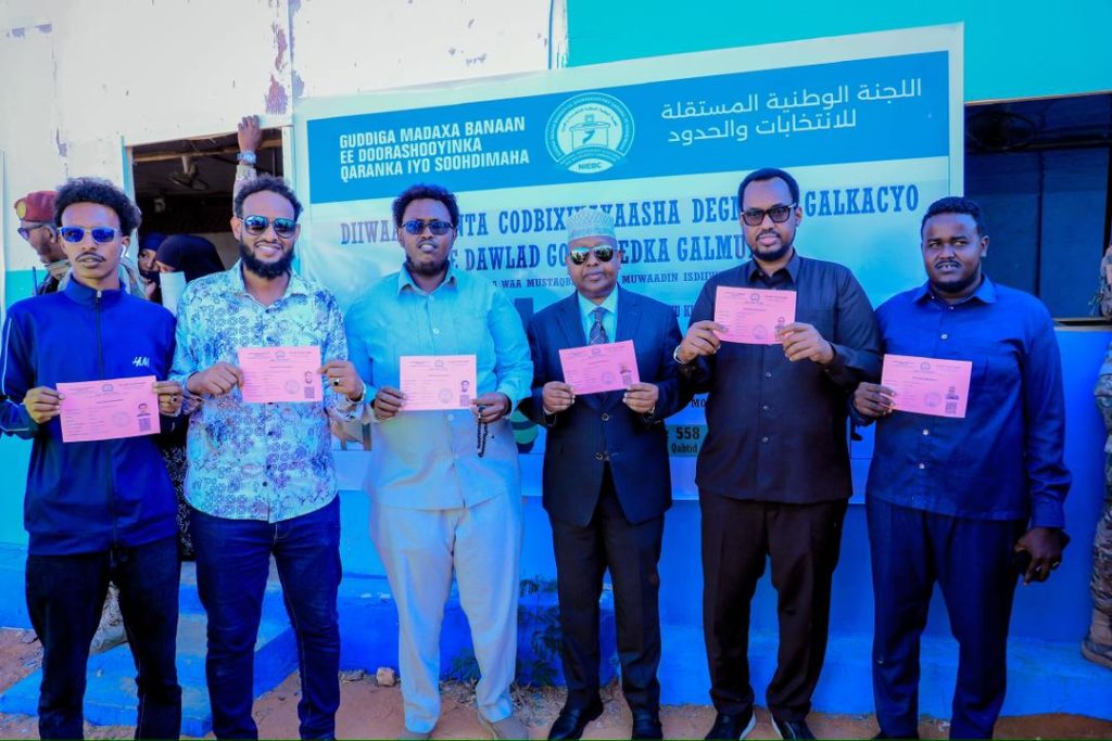 He stated: “Today I arrived in Galkacyo, and it is an honour to formally register and receive my voter card for the district, federal member state, and national elections. Elections are a constitutional right that have been absent from the hands of the people for 56 years, and today that right has been restored to the citizens of Somalia.”