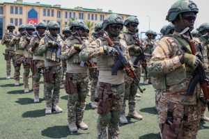 MOGADISHU – Somalia’s Minister of Defense, Ahmed Ma’allin Fiqi, conducted an inspection of a special training exercise by the elite Gorgor Commando units of the Somali National Army (SNA). The exercise marked the culmination of the commandos’ intensive training at the TURKSOM Military Academy in Mogadishu, a key institution for modernizing Somalia’s armed forces.