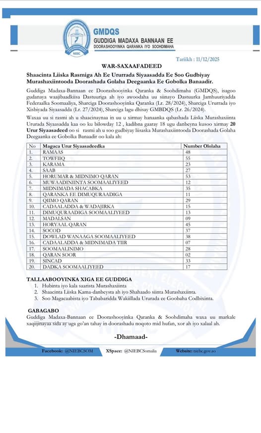 In its official communiqué, the NIEC emphasized that the validation process was conducted in strict adherence to the Provisional Constitution of the Federal Republic of Somalia. The procedures also aligned with the National Elections Law (Law No. 28/2024) and the Law on Political Parties and Associations (Law No. 27/2024 and Law No. 26/2024).