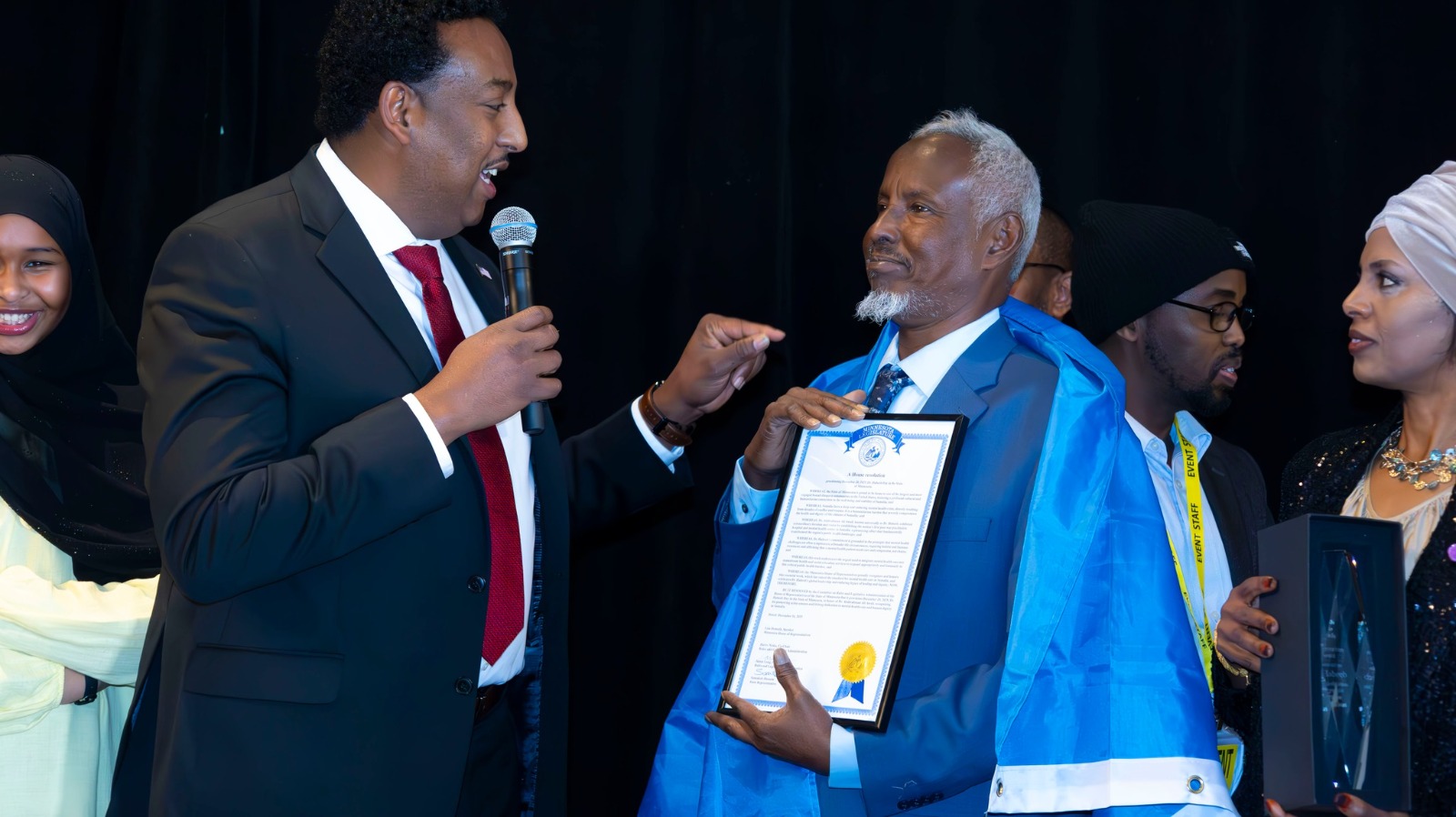 In addition, several prominent Somali artists were honored with Hero Awards, including Salad Derbi, Dalmar Yare, Nicman Hilaac, and Ahmed Haadi.