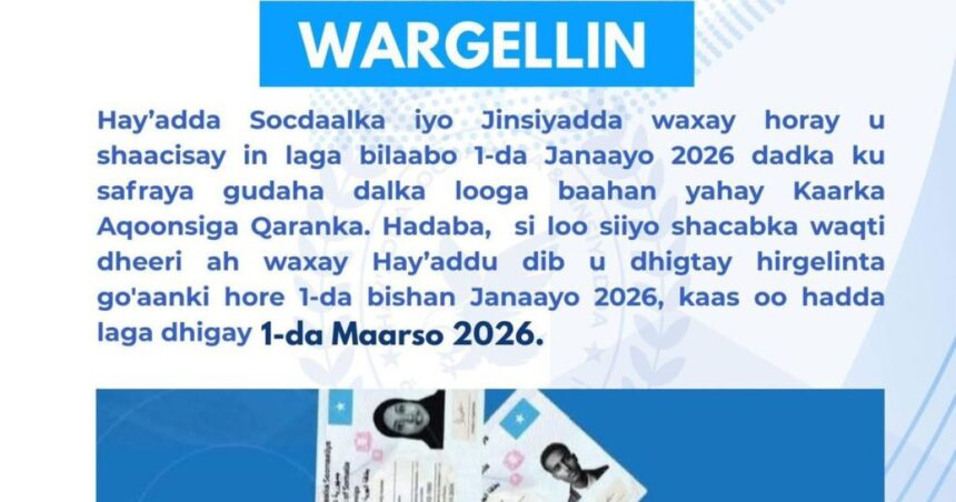 MOGADISHU, Somalia – The Immigration and Citizenship Agency of the Federal Republic of Somalia has officially announced a delay in the enforcement of the new travel regulation regarding National Identity Cards. In a statement released on Wednesday, the agency confirmed that the directive, which mandates that all travelers possess a National ID to undertake domestic travel, has been rescheduled to allow for a smoother public transition.