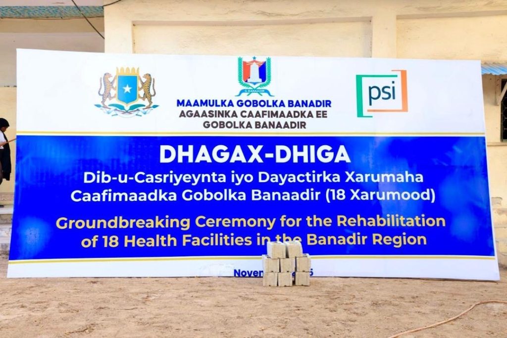 Mogadishu, (SONNA) – The Governor of Banadir Region and Mayor of Mogadishu, Dr. Hassan Mohamed Hussein (Muungaab), on Saturday officially laid the foundation stone for the renovation and construction of 18 modern health facilities equipped with comprehensive medical supplies. The project aims to strengthen healthcare services for residents of the capital. The ceremony was held at the Waaberi Maternal and Child Health (MCH) Center, with members of the health sector in attendance.