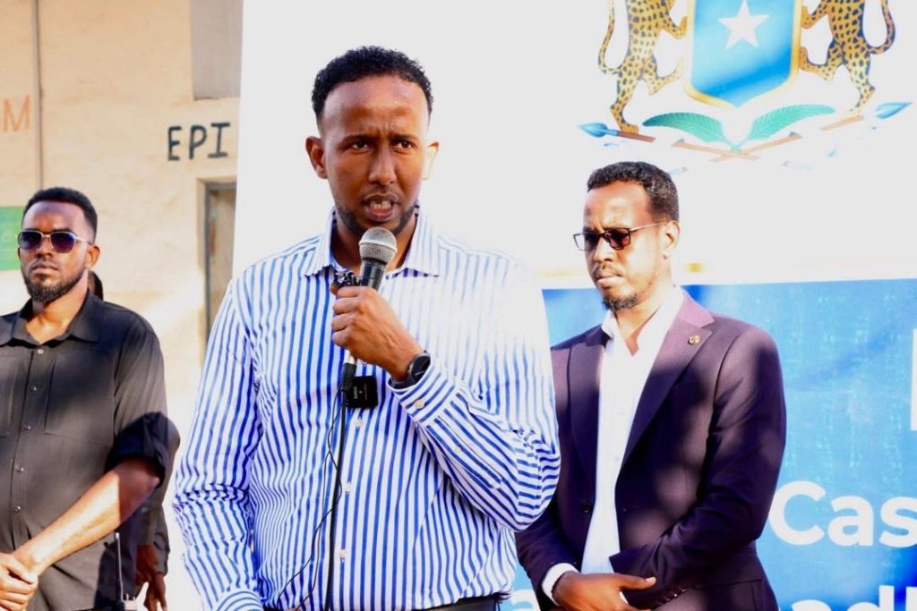 Mogadishu, (SONNA) – The Governor of Banadir Region and Mayor of Mogadishu, Dr. Hassan Mohamed Hussein (Muungaab), on Saturday officially laid the foundation stone for the renovation and construction of 18 modern health facilities equipped with comprehensive medical supplies. The project aims to strengthen healthcare services for residents of the capital. The ceremony was held at the Waaberi Maternal and Child Health (MCH) Center, with members of the health sector in attendance.