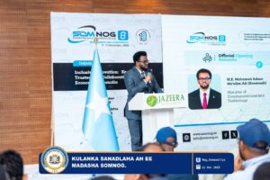 MOGADISHU (SONNA) – The Minister of Communications and Technology, H.E. Mohamed Somali, officially opened the closing session of the Somali Network Operators Group (SomNOG) annual conference on Thursday. The event marked the conclusion of intensive training workshops designed to equip Somali youth with advanced skills in information and communication technology (ICT).