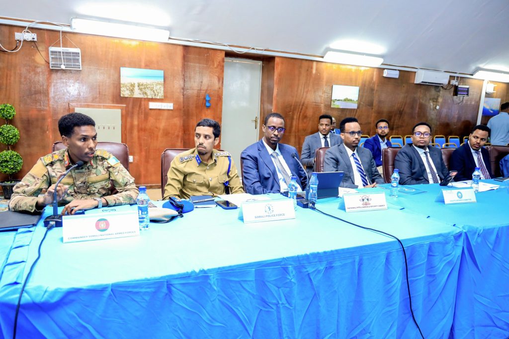 The meeting was attended by the Minister of Interior, Federal Affairs and Reconciliation, H.E. Ali Yusuf Ali (Ali Hoosh); the Minister of Internal Security, H.E. Abdullahi Sheikh Ismail Fartaag; the State Minister at the Ministry of Foreign Affairs, H.E. Ali Balcad; the National Security Adviser, Ambassador Aweys Haji Yusuf; the Commander of the Somali National Army, Major General Odowaa Yusuf Rage; the Commander of the Somali Police Force, Brig. General Asad Osman Abdullahi; commanders of the armed forces; ambassadors of international partners; and representatives of international organisations based in the country.
