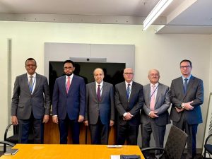 The Minister had a productive meeting with the Deputy Managing Director of the IMF, Hon. Nigel Clarke. Their discussions centered on strengthening the two sides’ relationship, which is focused on economic development and ongoing financial reforms in Somalia. The IMF has played a crucial role in supporting Somalia’s fiscal and financial reform programs.