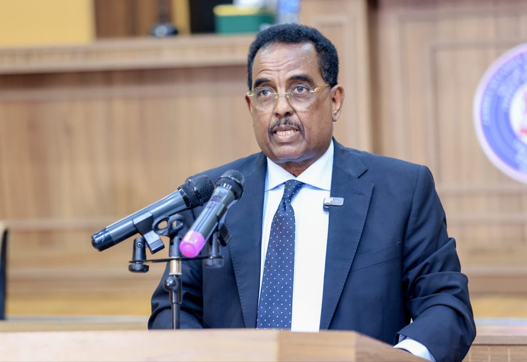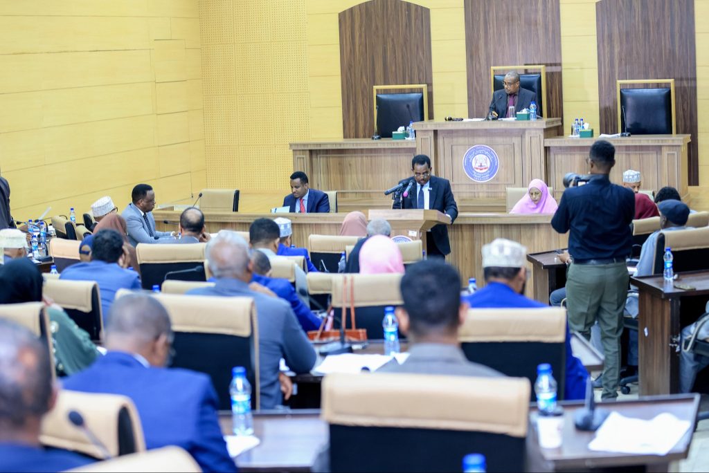 Mogadishu, (SONNA) — The Minister of Interior, Federal Affairs, and Reconciliation of the Federal Government of Somalia, H.E. Ali Yusuf Ali Hosh today presented to the Upper House of the Federal Parliament of Somalia the first reading of the IDP Bill.
