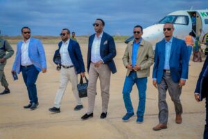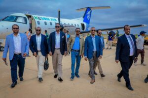 The delegation was received at Baidoa airport by the Commission’s Secretary General, Mr. Hussein Nunow Ali, who was already in the city, alongside other officials.