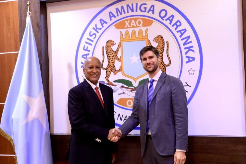 Mogadishu, (SONNA) — The National Security Advisor to the President of the Federal Republic of Somalia, Amb. Aweis Hagi Yusuf Ahmed met with the Ambassador of the United Kingdom to Somalia, Amb. Charles King on strengthening and revitalizing the relationship between Somalia and the UK.