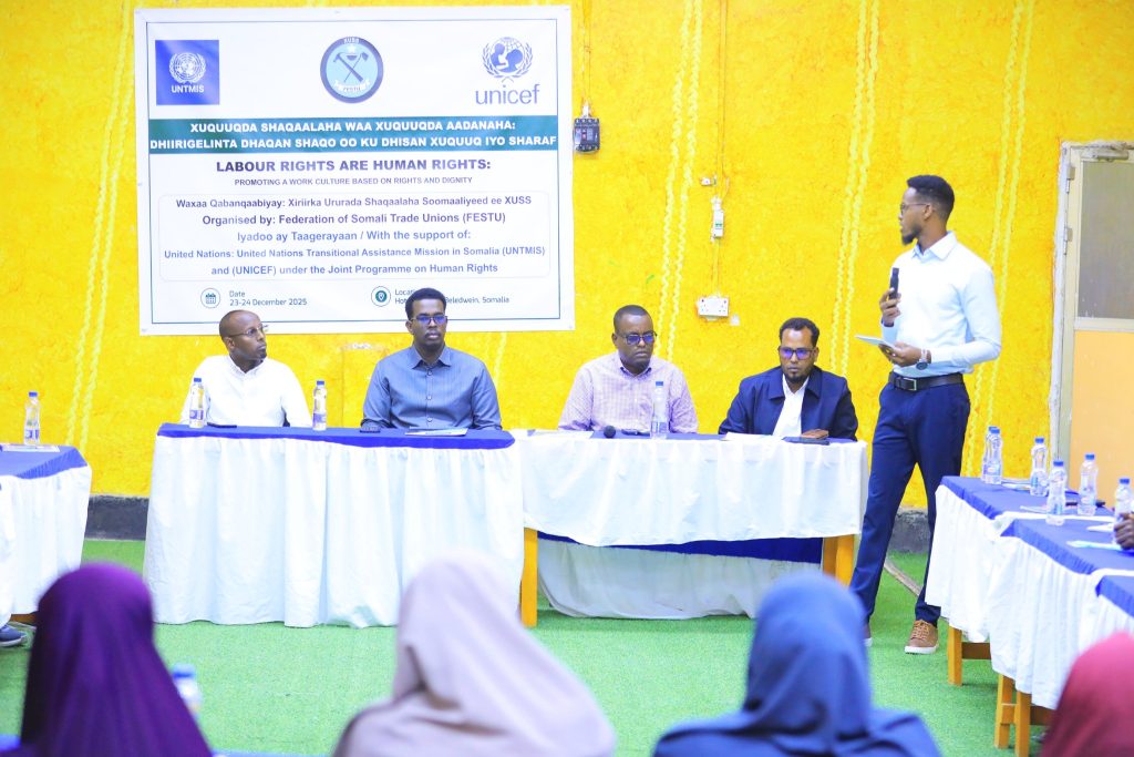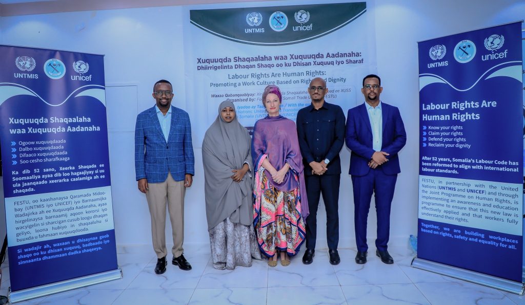 The Federation of Somali Trade Unions (FESTU), with the support of the United Nations (UN), has rolled out a nationwide labour rights education campaign aimed at enabling workers to understand, reclaim and defend their labour rights while ensuring effective implementation of Somalia’s newly adopted Labour Code, which entered into force after 52 years without comprehensive reform.