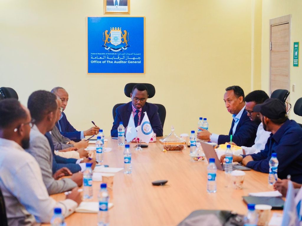 Mogadishu, (SONNA) — The Office of the Auditor General of the Federal Republic of Somalia today held a working meeting attended by the Director General of the Ministry of Commerce and Industry, representatives from the National Identification Agency, and the Revenue Directorate of the Ministry of Finance. The meeting focused on accelerating and simplifying the documentation process related to the registration, execution, and monitoring of contracts and agreements involving federal government institutions.